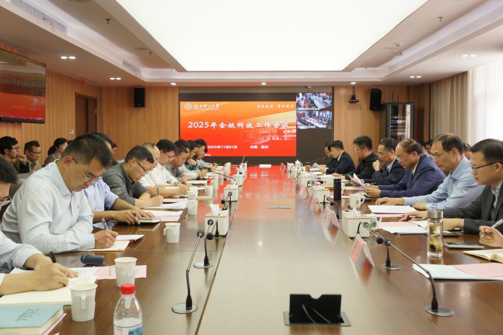 本网讯 11月1日,为贯彻落实党的二十届四中全会精神,推进教育科技人才一体发展,我校在三江校区(东园)濂溪楼三楼2号会议室召开2025年全校科技工作会议。在家校领导、赣南实验室主要负责人,各学院院长、科研副院长,实体化运行的国家级、省级平台负责人,科技处、社科处、技转中心、大学科技园等职能部门负责人参加会议。会议由副校长汪航主持。