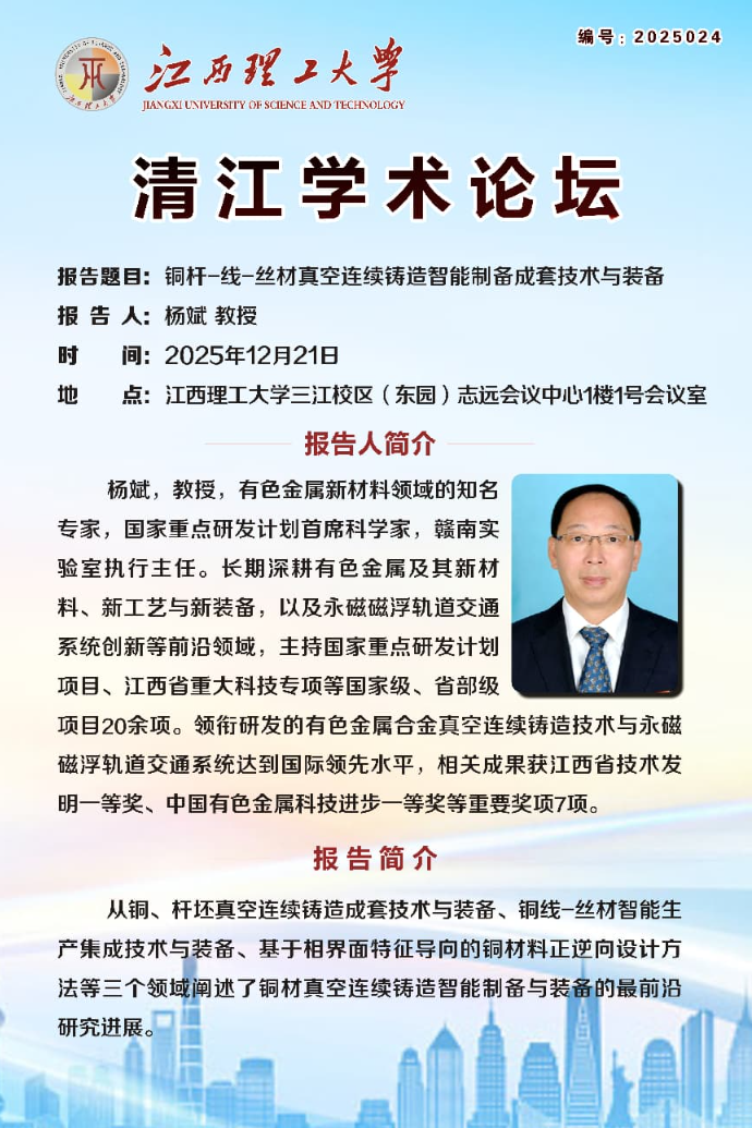 报告题目:铜杆-线-丝材真空连续铸造智能制备成套技术与装备