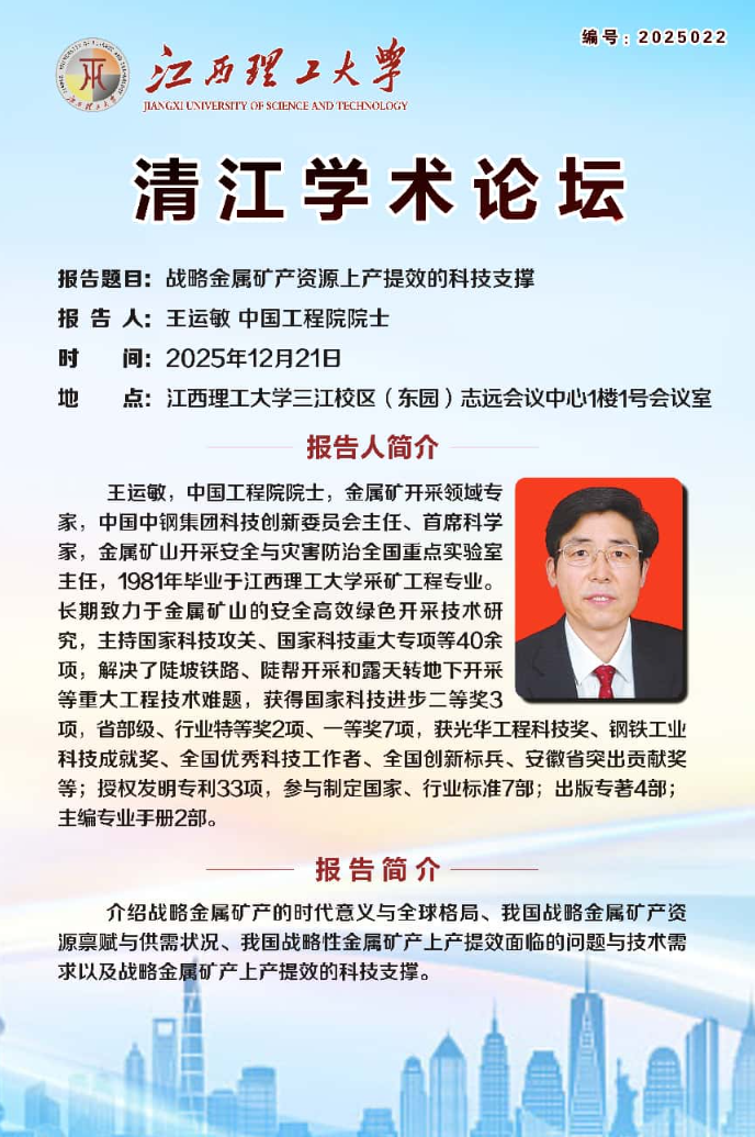 地点:江西理工大学三江校区(东园)志远会议中心1楼1号会议室